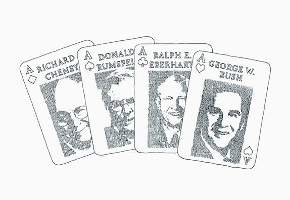 Dessin représentant les quatre as d’un jeu de cartes portant les visages et les noms de très hauts responsables politiques américains en charge des affaires en 2001. Il fut réalisé par l'artiste suite à la distribution par l’armée américaine de jeux de cartes sur lesquelles étaient imprimés les visages des principaux membres du gouvernement Irakien de Saddam Hussein.