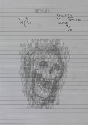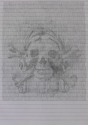 Dessins composés de milliers de petits traits successifs à la manière d’un détenu mesurant quotidiennement le temps et les jours qui passent. Dessins automatiques réalisés dans les marges des cahiers d'école jusqu'aux walldrawings que constituent la série "Day after day".