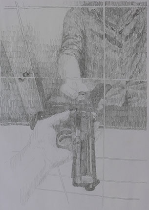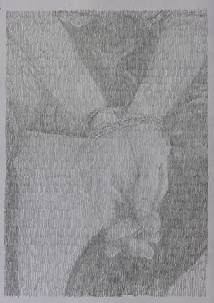 Walldrawing composé de milliers de petits traits successifs à la manière d’un détenu mesurant quotidiennement le temps et les jours qui passent. Portrait réalisé sur la paroi d’une cellule des anciennes prisons de Vevey en Suisse. Alain Declercq qui était invité à exposer dans une des cellules a décidé de s’y faire enfermer pendant une semaine afin de réaliser sa pièce et y expérimenter une des obsessions des prisonniers, retrouver l’être aimé.