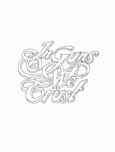 Pièce en tirs réalisée sur le mur séparant le salon de la cuisine de l’appartement d’un particulier et constituée de 550 tirs dont les impacts dessinent une parodie du "In god we trust" inscrit sur les dollars américains.