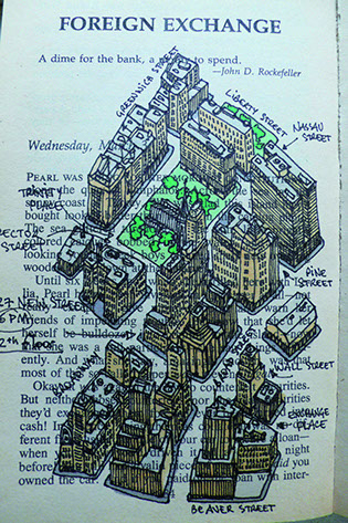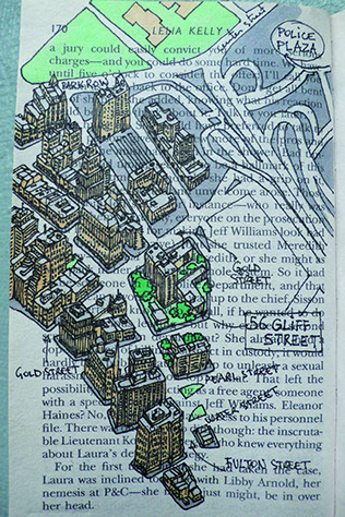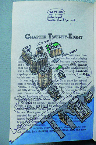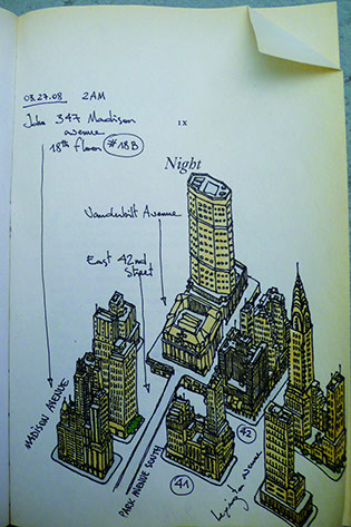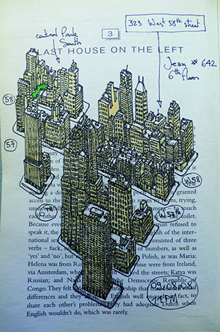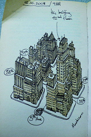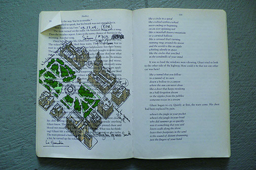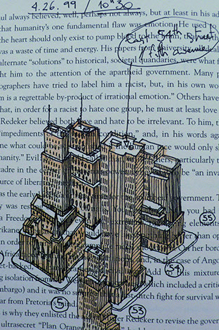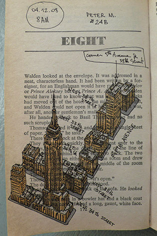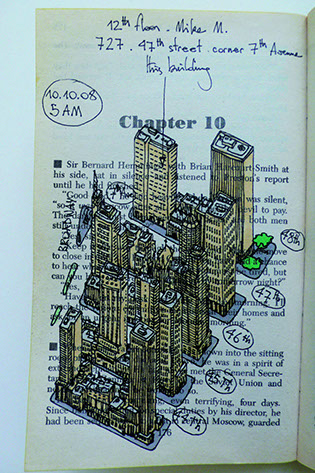 Dessins axonométriques de Manhattan réalisés sur des livres d’espionnage populaires achetés d’occasion. Cette série de dessins est constituée de livres qui furent envoyés à des personnes en vue de leur proposer, par le dessin lui-même, un lieu de rendez-vous. "Meeting place" est constituée de treize livres qui furent restitués au moment même de la rencontre, et ne comprend pas les livres qui furent envoyés à des contacts qui n'ont jamais répondu à la demande d'entretien.