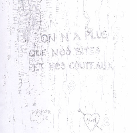 Élaborés à partir de phrases croisées au hasard d'une chanson, d'un document ou d'un graffiti, ces dessins sont réalisés rapidement et offerts à des hommes et femmes pour qui elles prennent un sens