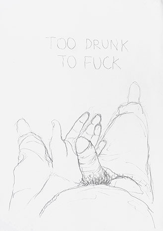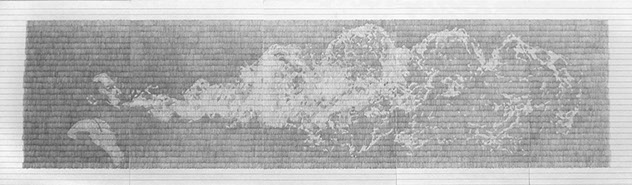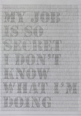 Dessins composés de milliers de petits traits successifs à la manière d’un détenu mesurant quotidiennement le temps et les jours qui passent. Dessins automatiques réalisés dans les marges des cahiers d'école jusqu'aux walldrawings que constituent la série "Day after day".9