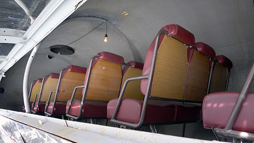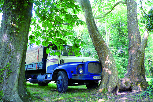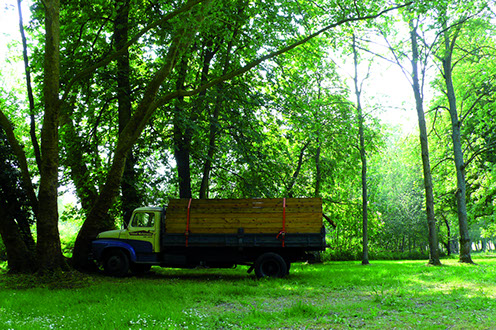 Camion transportant une cache accessible par une trappe et prenant l’apparence d’un chargement de poutres. Collection du domaine de Chamarande, il contient des objets trouvés dans le château et, comme accidenté contre un arbre, semble témoigner d’un casse raté.