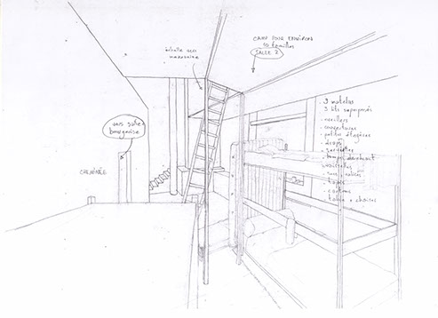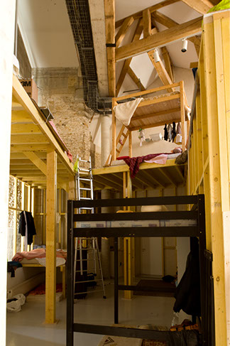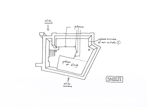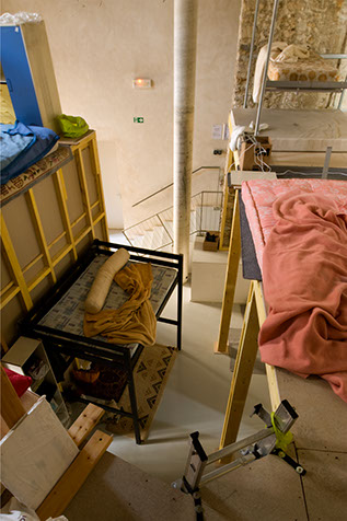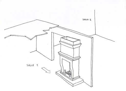 "la maréchalerie", située au cœur de la ville de Versailles. Elle consiste en la réalisation d'une salle très bourgeoise dans laquelle un réveil sonne sans interruption. Dès que le spectateur actionne le bouton de pause de cette alarme, la cheminée pivote et laisse apparaitre un espace caché : planque aménagée pour y recevoir une dizaine