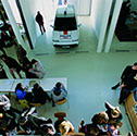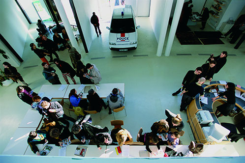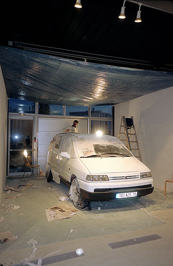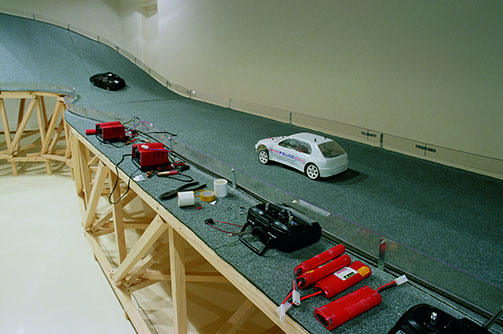 à disposition du public et placées sur un circuit goudronné de quinze mètres de long. Dispositif permettant de réaliser une course poursuite opposant une voiture noire, de marque Mercedes, et une voiture de police. Présentée au Centre d’art de Gennevilliers, cette pièce est aussi un jeu pour les élèves de l'école attenante au centre d'art. "Basic race" fait référence au circuit du Lingotto surmontant l’usine Fiat à Turin et dont la forme se rapproche de celle d’un vélodrome.