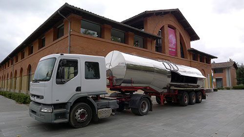 Camion transportant une cache accessible par une trappe sur le flan de la citerne. Réalisée pour le FRAC Nord/Pas de Calais, cette version de "My home is a castle" fait écho aux dizaines de milliers