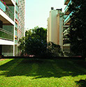 d'un parking rendant cette cour très austère, l'échelle ramène le spectateur à hauteur du toit du parking sur lequel le jardin existant a été replanté, redonnant ainsi le point de vue initial sur ce morceau de verdure parisienne. Cette sculpture déplaçable peut aussi faire office de mirador pour une seule personne.