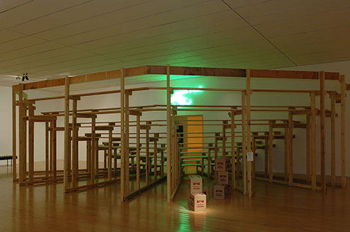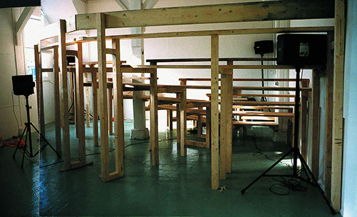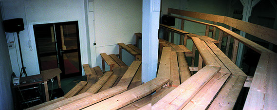 Forum de 150 places conçu pour l’inauguration de la Zoo galerie à Nantes. Gradin omniprésent faisant face au bureau du galeriste confiné dans un coin. Alain Declercq a pris au mot Patrice Joly, directeur de la Zoo galerie, qui ne cessait d’évoquer son désir de rencontrer le public à travers son lieu, désir satisfait à l’extrême par une structure qui, face à son bureau, force la rencontre. Vues également de l'exposition hommage à la zoo galerie lors de la biennale de Lyon de 2007.