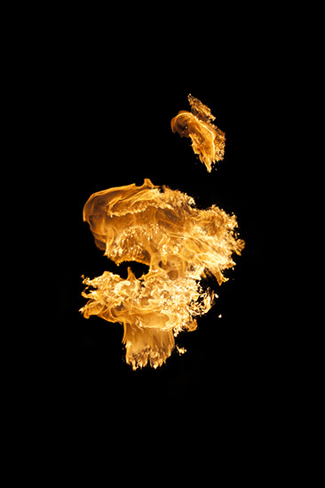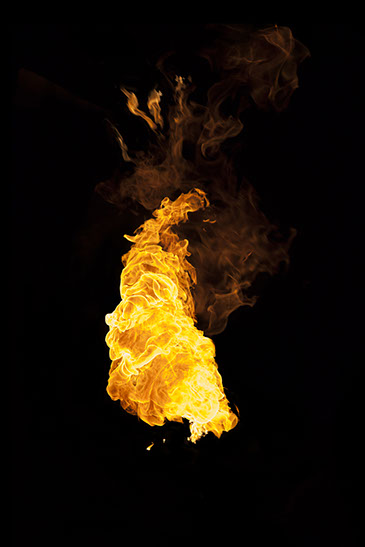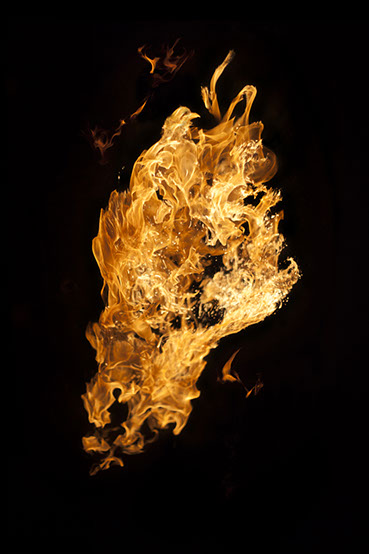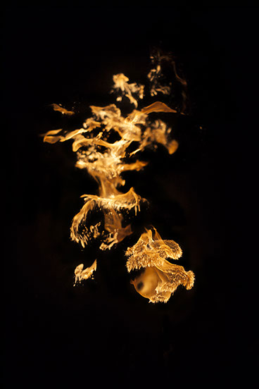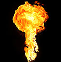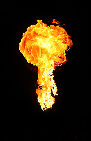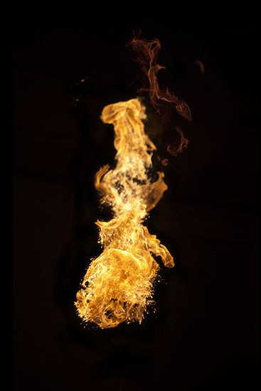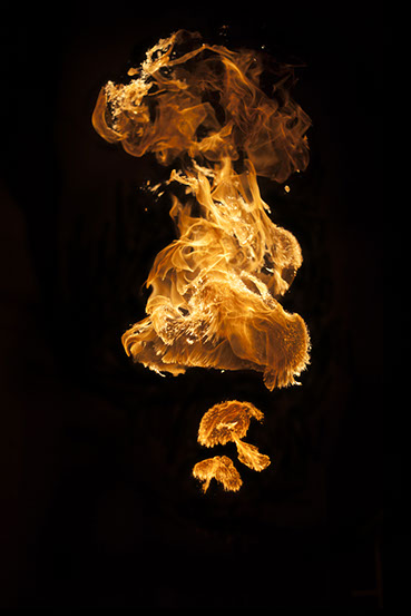 à l'aide de différentes matières combustibles qui permettent à l'artiste de littéralement sculpter le feu pour qu'il prenne l'apparence d'un type particulier d'explosifs (TNT, Phosphore, C4, etc).