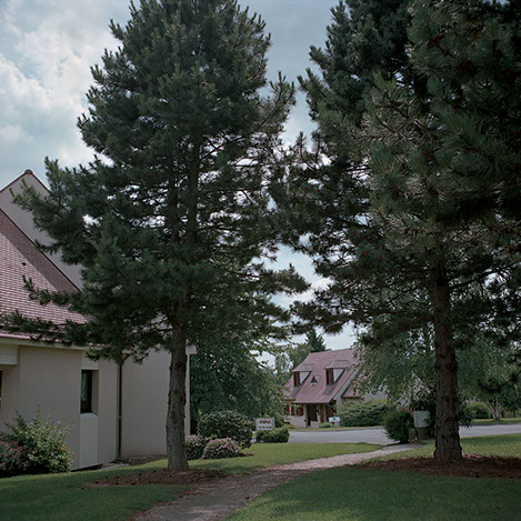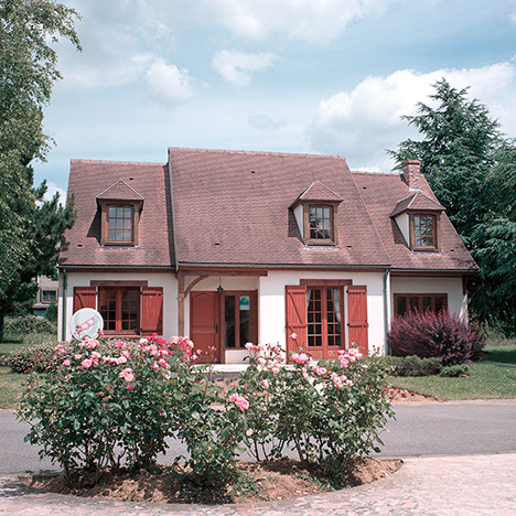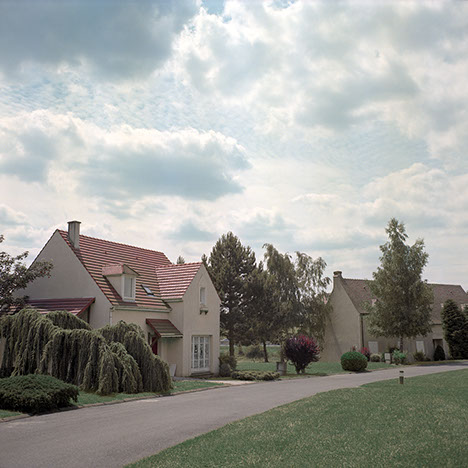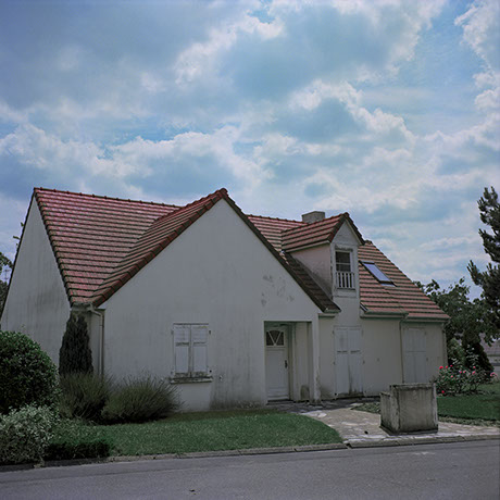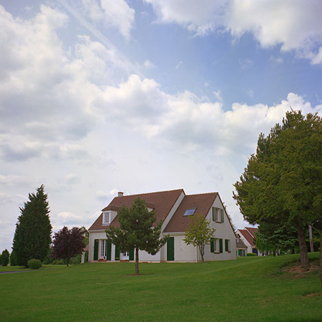 Série de vingt photographies d'un village factice constitué de maisons témoins visitables par de potentiels acquéreurs. Vues de ces pavillons inhabités, à la lisière du décor, en retrait des façades habilement aménagées par les promoteurs qui font ici salon. Vingt cartes postales d’un village dont la vie est simulée. C'est aussi une forme de repérage pour l'installation Le village idéal (noyé).