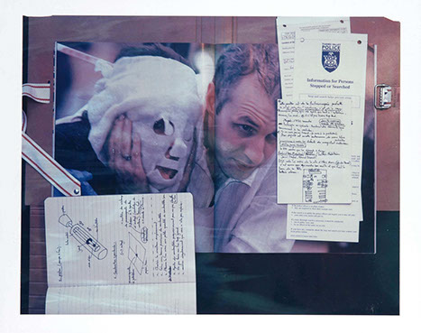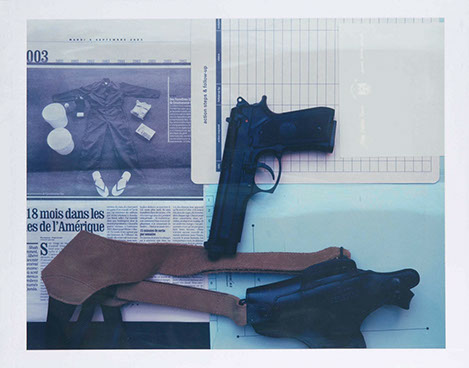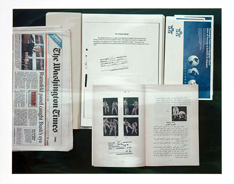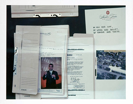 Travail de reconstitution des photographies prises par un policier de la brigade anti-terroriste lors de la perquisition conduite sur le lieu de travail d’Alain Declercq à Bordeaux le 24 juin 2005. Cette série résulte de l’observation du travail effectué par le policier enquêteur, notamment des angles de prise de vue adoptés et de la composition des documents. Cette série photo apparaît comme une forme de rapport sur la perquisition conduite par une quinzaine de policiers, durant plus de cinq heures, dans une confusion assez manifeste. Elle constitue également un inventaire des documents utilisés pour la réalisation du film Mike.
