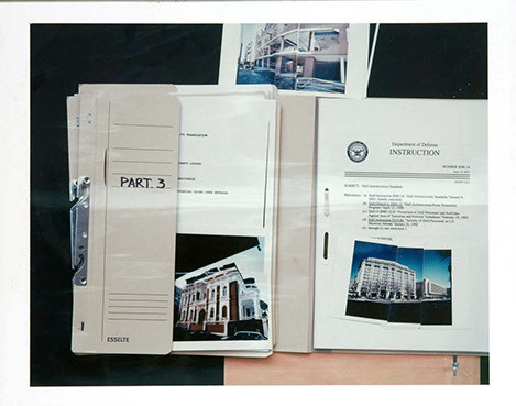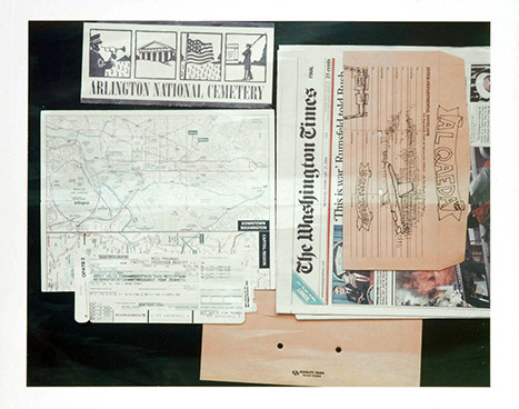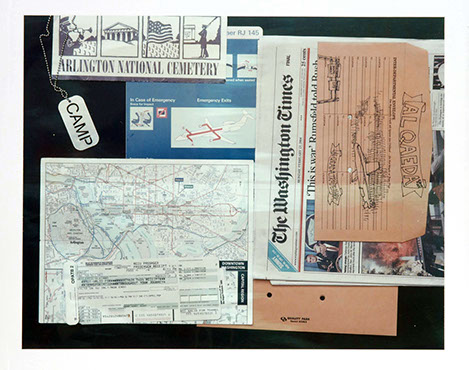 Deux photographies du Pentagone réalisées sous des caméras de surveillance existantes, en suivant les directions dans lesquelles sont positionnés leurs objectifs. Ces images présentent les vues sur le Pentagone que ces deux caméras de surveillance permettent d’obtenir et qui ont enregistré les attentats du 11 septembre 2001, mais qui n'ont jamais été présentées au public.