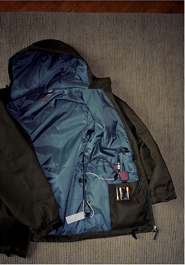 Photographie du système vidéo caché dans une veste et utilisé par l'artiste à