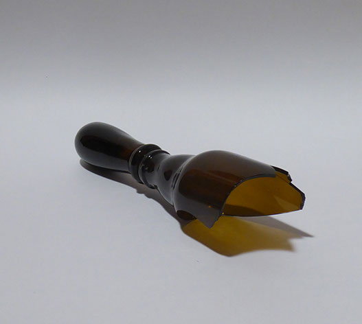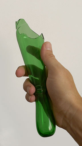 Fasciné par les bagarres de bar où les protagonistes cassent une bouteille sur le comptoir pour se servir du tesson de verre comme d'une arme, Alain Declercq met en forme une sorte de manche-matraque permettant une bien meilleure prise en main.