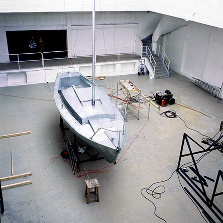 Bateau de plaisance entièrement blindé. Alain Declercq qui souhaitait travailler sur l’identité militaire de Brest a d’abord imaginé transformer une frégate en bateau de plaisance jusqu’à ce qu’une fin de non recevoir soit opposée par l’armée, et que germe alors l’idée inverse, à savoir transformer un bateau de plaisance en le militarisant. "Jolly Roger" a été acquise par le parc départemental de Chamarande dans l’Essonne où elle fut installée, puis totalement brûlée en 2005 suite à un incendie criminel non élucidé.