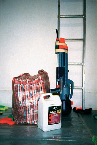 Série d’une dizaine de jouets de guerre transformés en armes dangereuses reconfigurées en lance-flammes capable de projeter une boule de feu à plus de dix mètres.